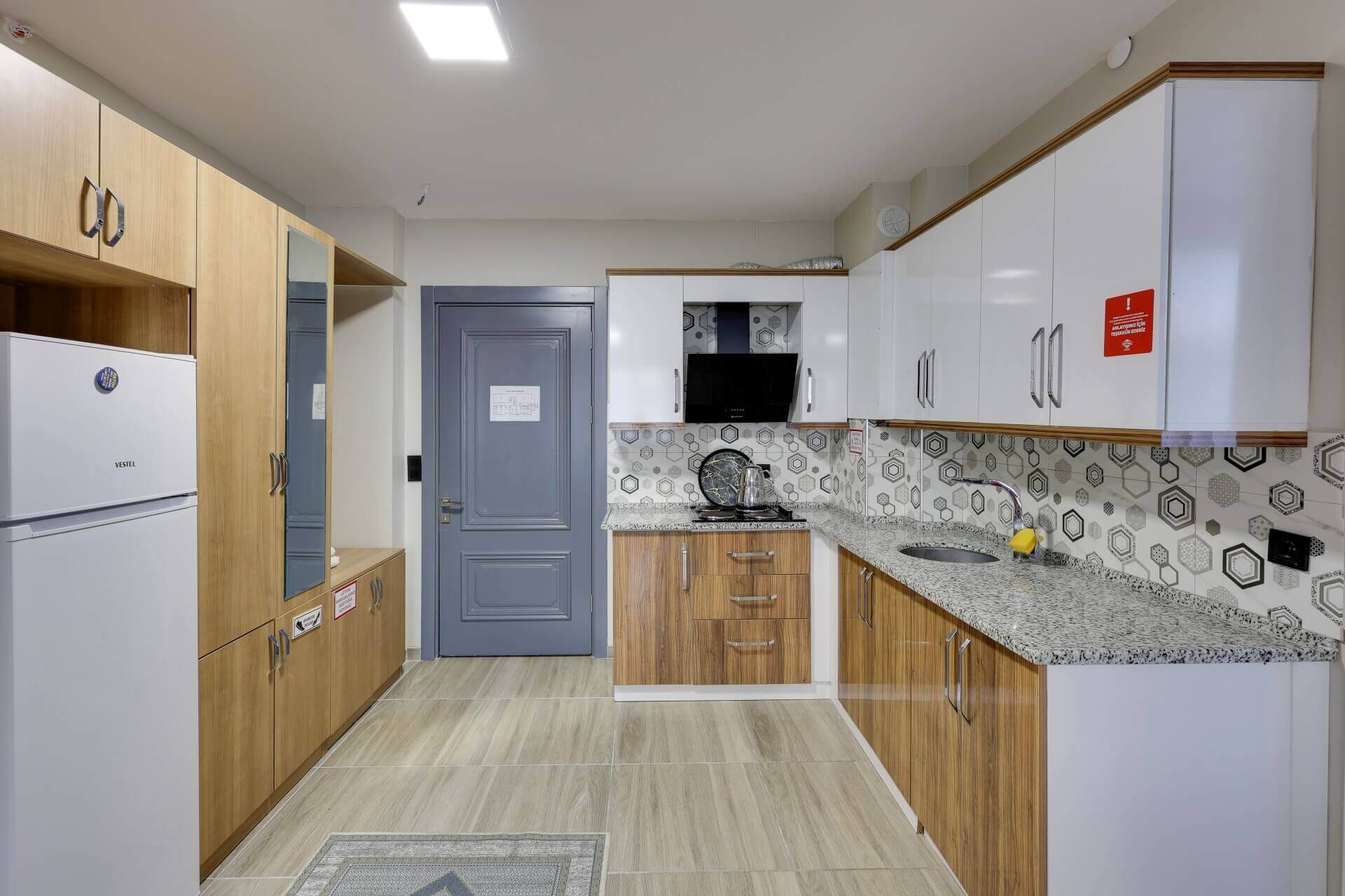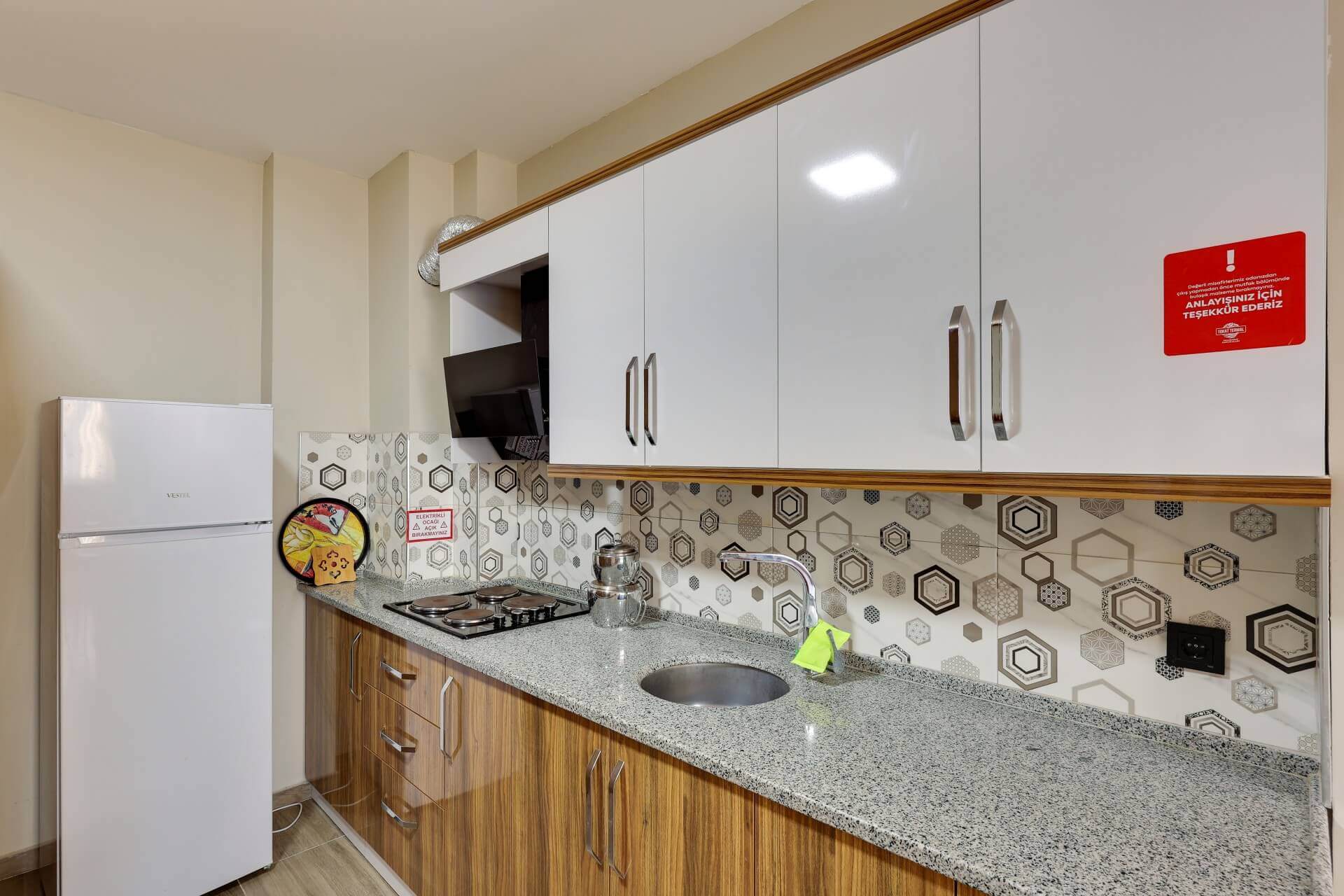 1 çift kişilik, 2 tek kişilik, 1 adet salonda L koltuk. Max 6 kişi kalabilir. Su ısıtıcısı bulunmamaktadır. Ara kapılıdır.