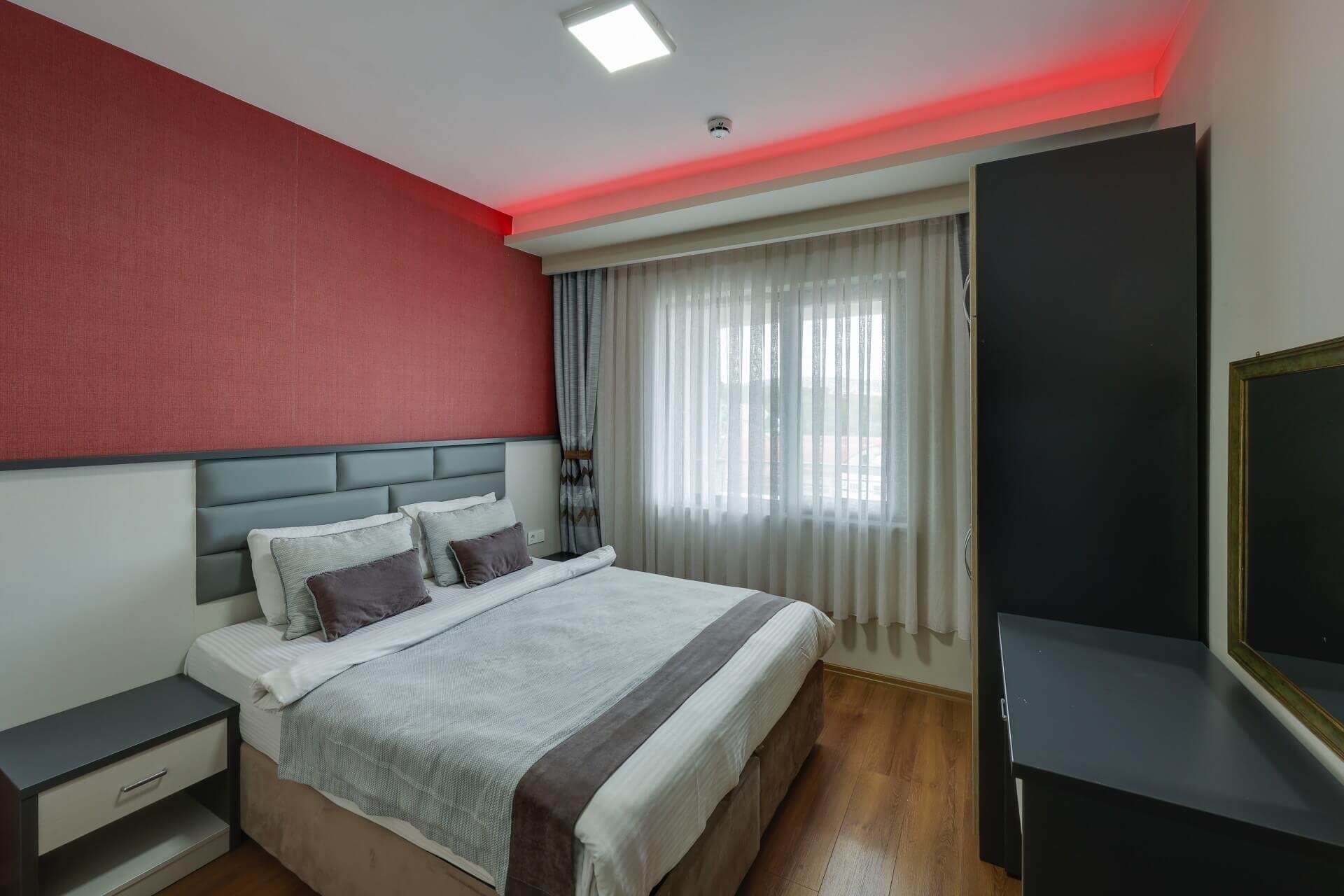 Ana binadadır. 1 çift kişilik veya 2 tek kişilik yatak, koltuk bulunmaktadır. Termal su bulunmaktadır.