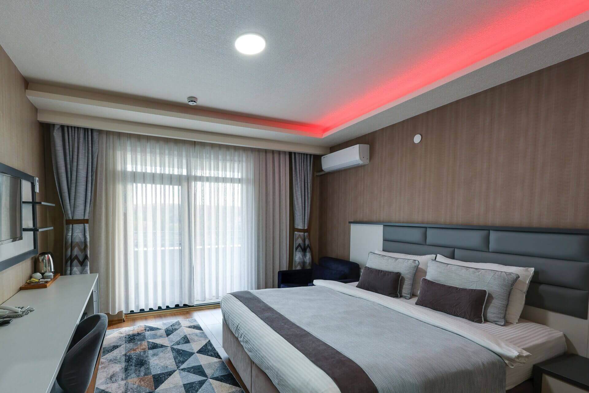 Standart odalar ek binadadır. 1 çift kişilik veya 2 tek kişilik yatak, koltuk bulunmaktadır. Termal su bulunnmaktadır.